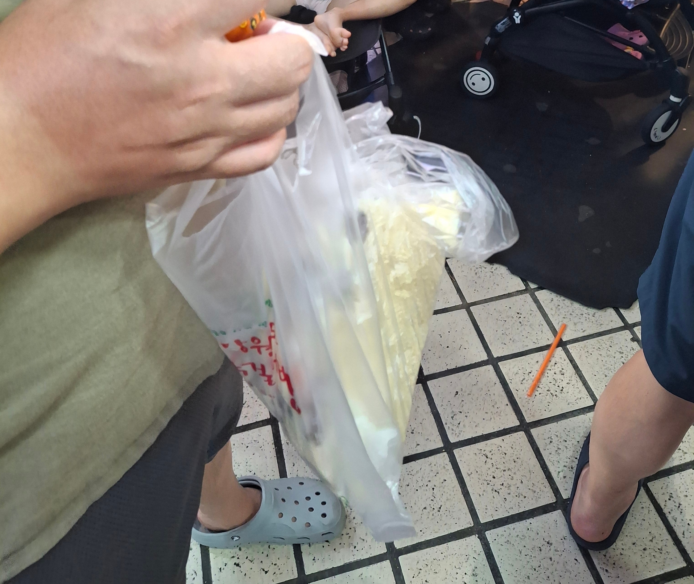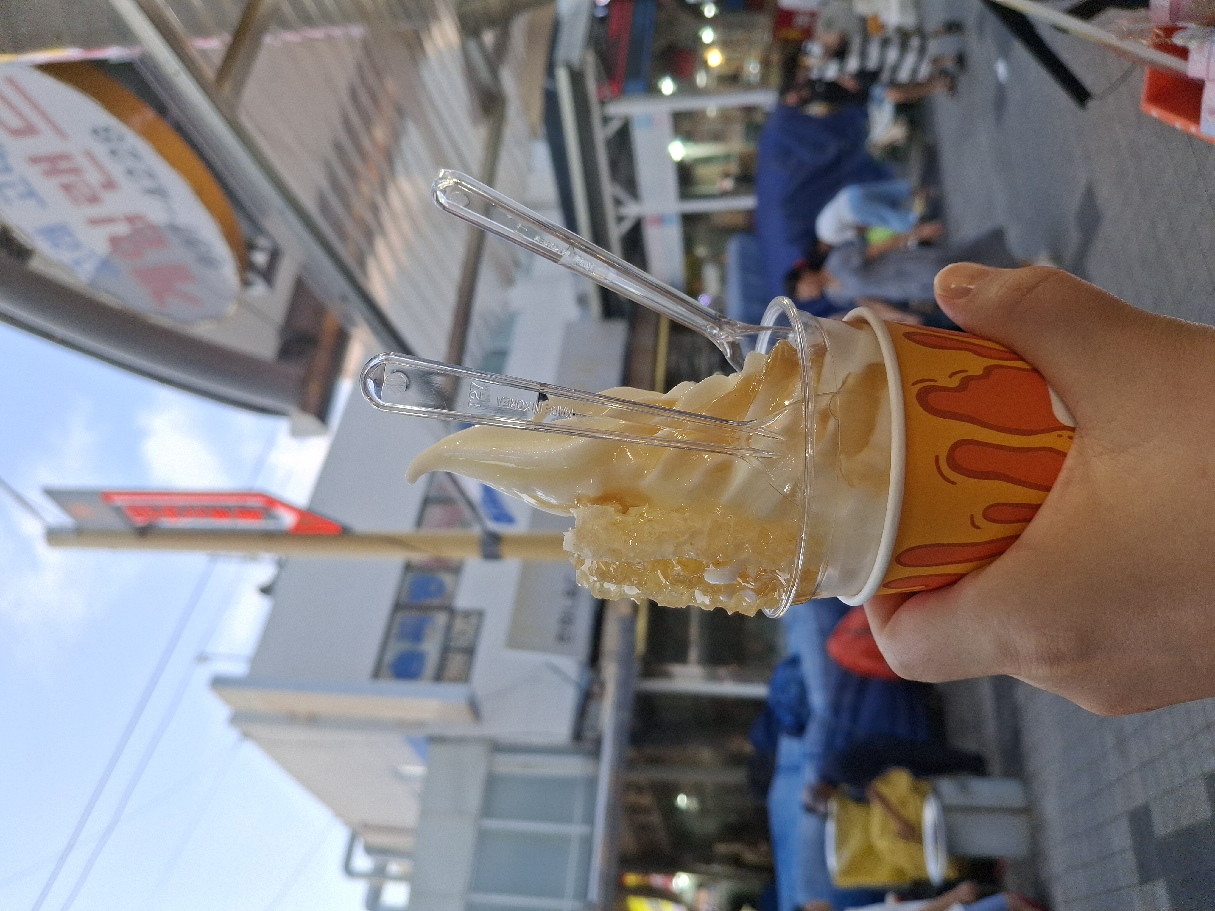 먼저 시장에 들어서자 마자 벌집아이스크림을 사서 아이에게 들려줬어요. 혼잡한 시장에서 짜증 방지용이에요. ㅋㅋㅋ 벌집은 저만 좋아해서 제가 다 먹었는데 아이스크림과 같이 씹으면 안에서 따뜻한 꿀이 찍!나오는데 그것이 별미!! 그러나 밀납부분이 찔겨서 그런 식감을 좋아하지 않으면 불일듯 해요.
