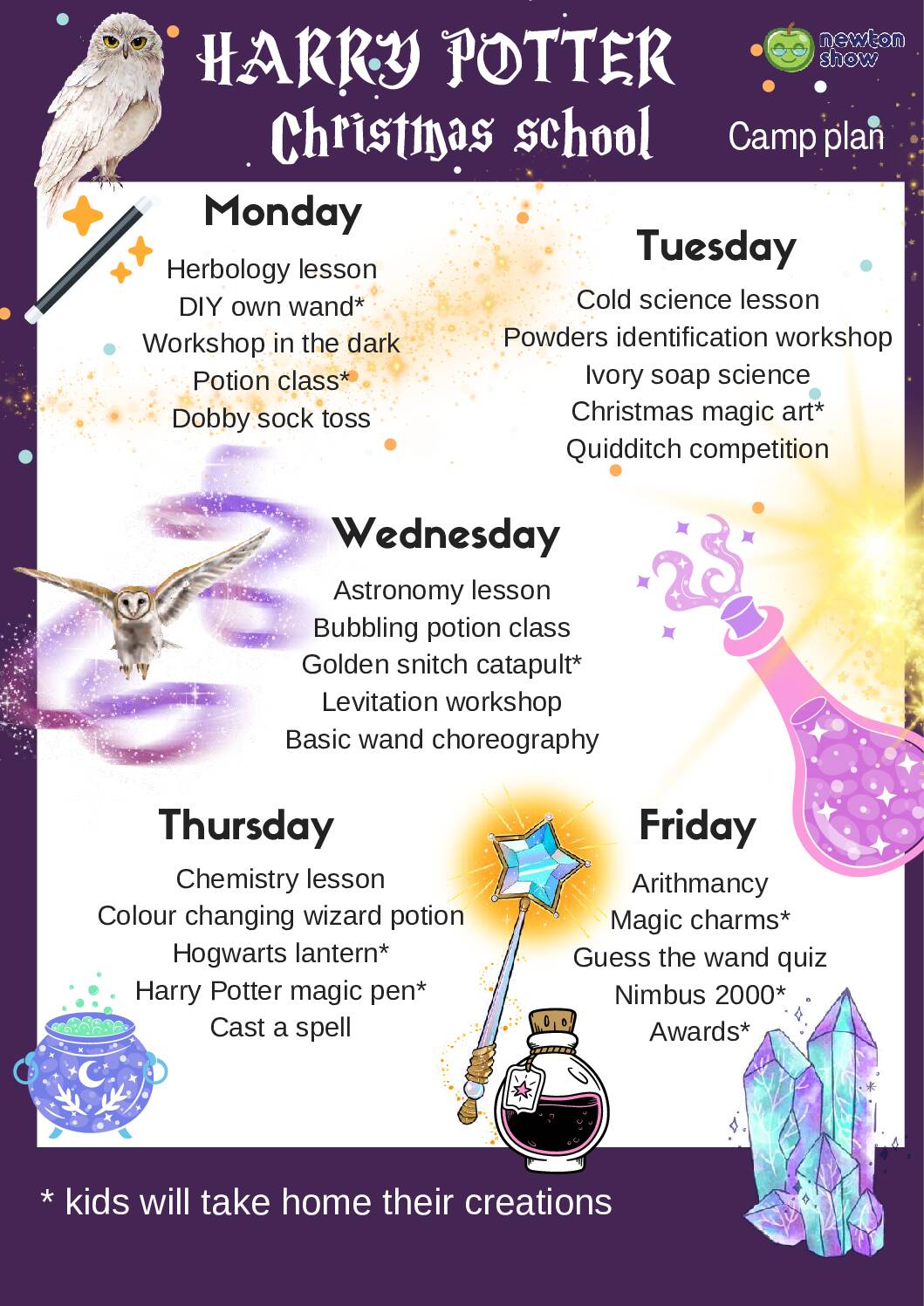 제가 확인했을 때는 크리스마스 캠프로 크리스마스주제의 과학실험과 해리포터캠프로 나누어져 있었고 각각 1주일 코스였어요. 둘 다 하게 되면 2주를 가게 되는 것이고 한 코스만 선택하면 일주일이죠?