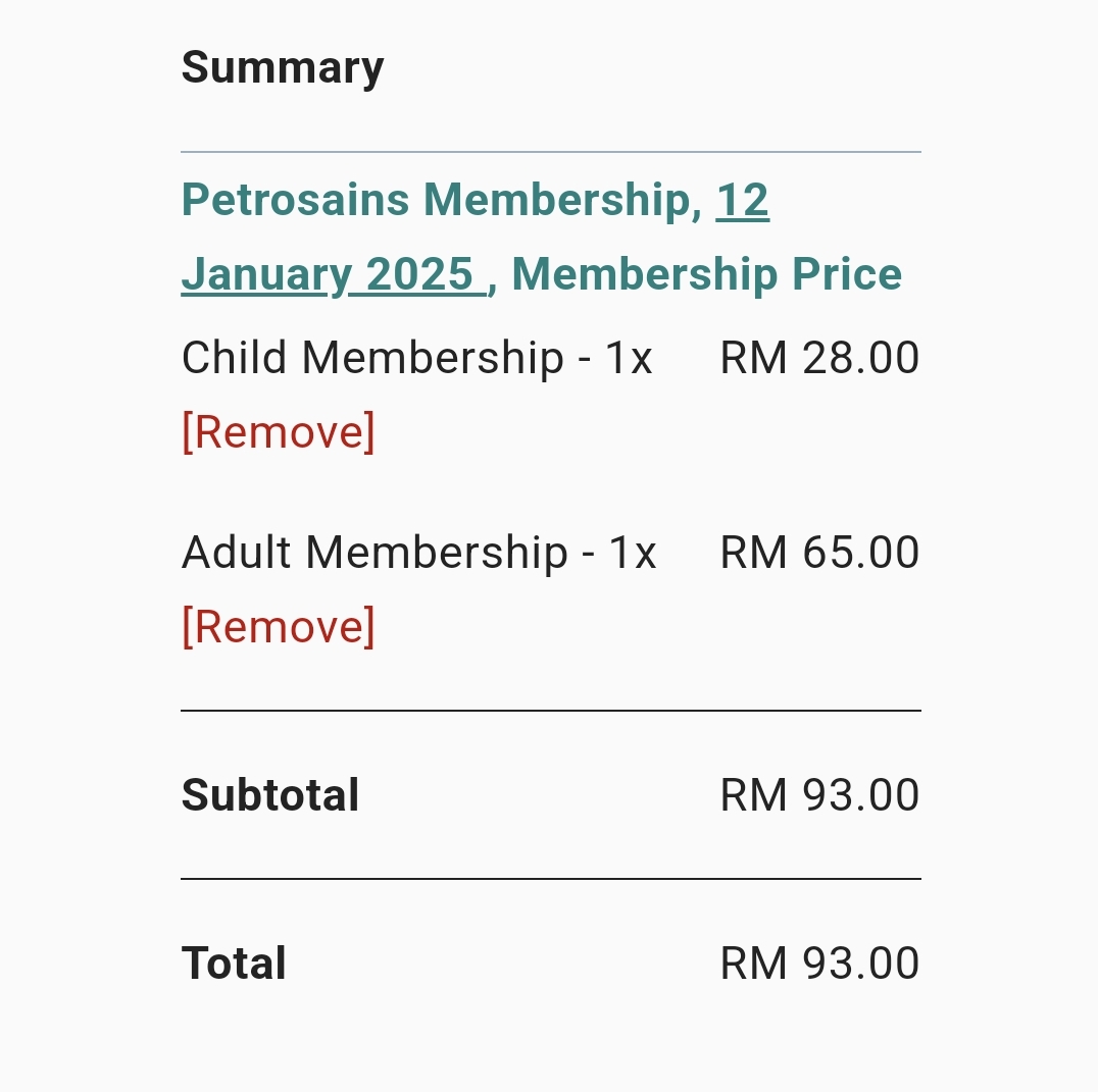 제가 구매할 당시엔 아이1명+어른1명 65RM이었어요. 그런데 현재(24년 1월 24일 기준) 조회해보니 할인이 있는지 어른이 35rm으로 할인된 가격으로 왔고 아이는 25rm입니다. 가격변동이 그때그때 있어요.
