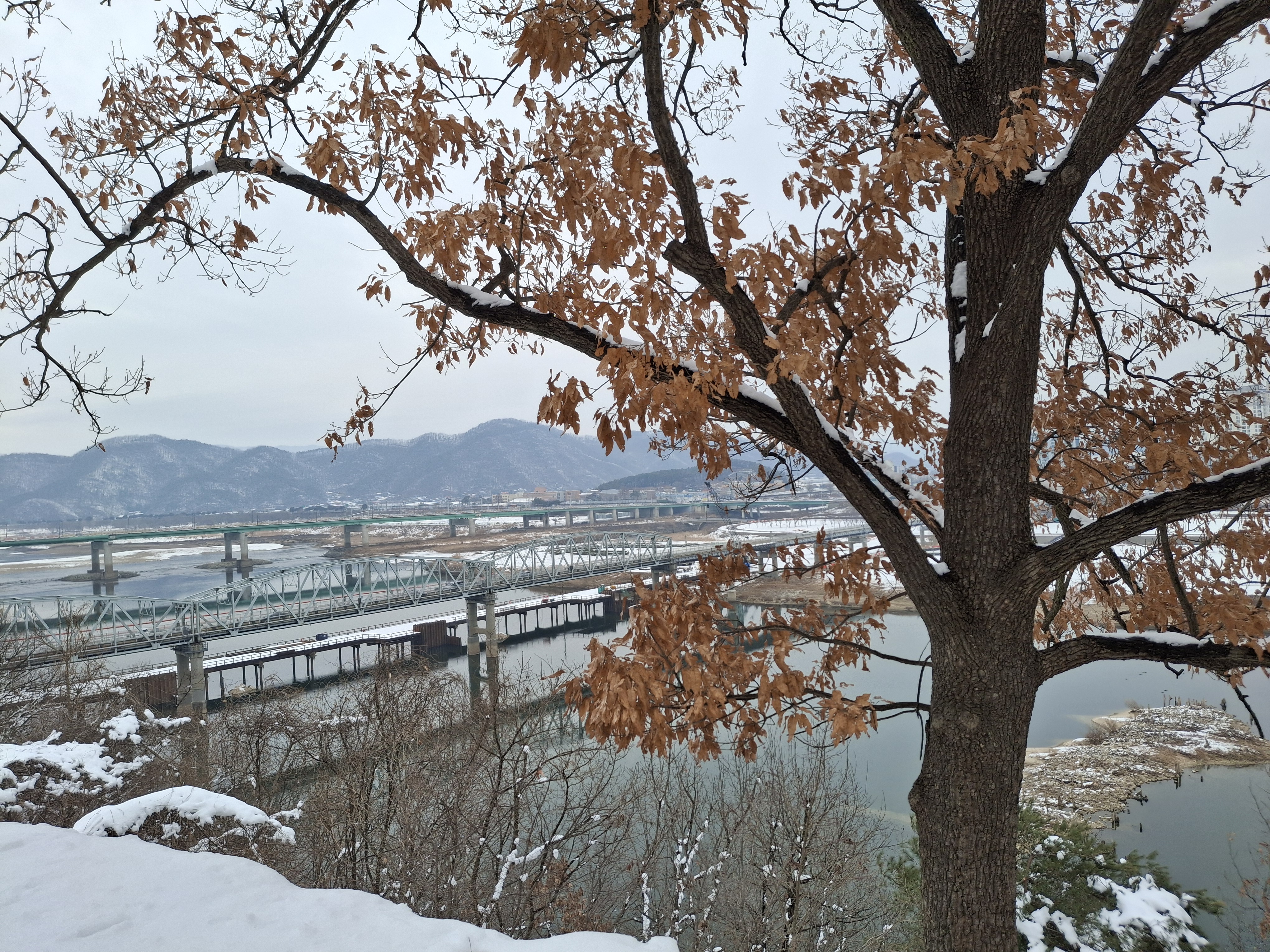 산성길 따라 걷다보면 철교도 보이고 시내 전경이 속시원하게 펼쳐져요. 이날은 많은 눈으로 대부분의 산성길을 막혀있고 출입불가한 길도 있었어요.