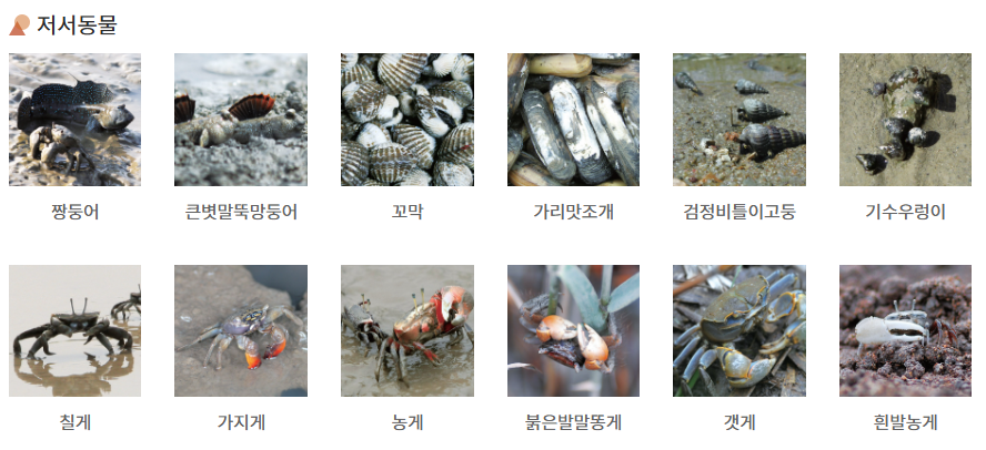 나무테크가 습지 위로 쭉 드리워져 있어요. 계속 걸어가다 보면 용산전망대가 나와요. 데크아래를 살펴보니 짱둥어와 게를 발견할 수 있어요. 게들이 특히 많이 보이는데 색갈도 모양새도 모두 달라서 다른 모양의 게들을 찾아보는 재미가 있어요. 연신 테크아래를 살펴보고 됩니다.