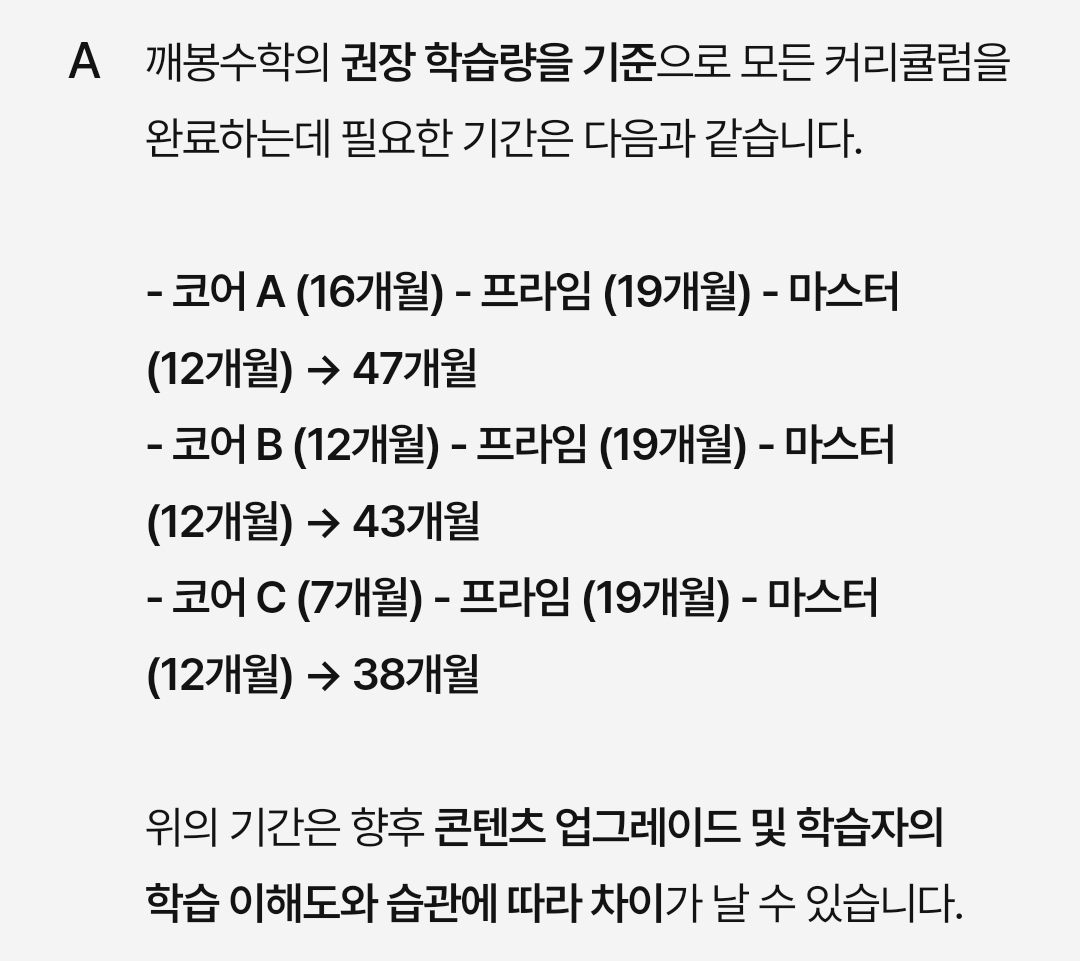 깨봉수학은 기간이나 서비스에 따라 금액이 달라지는데요, 대략적인 기준은 이렇습니다.