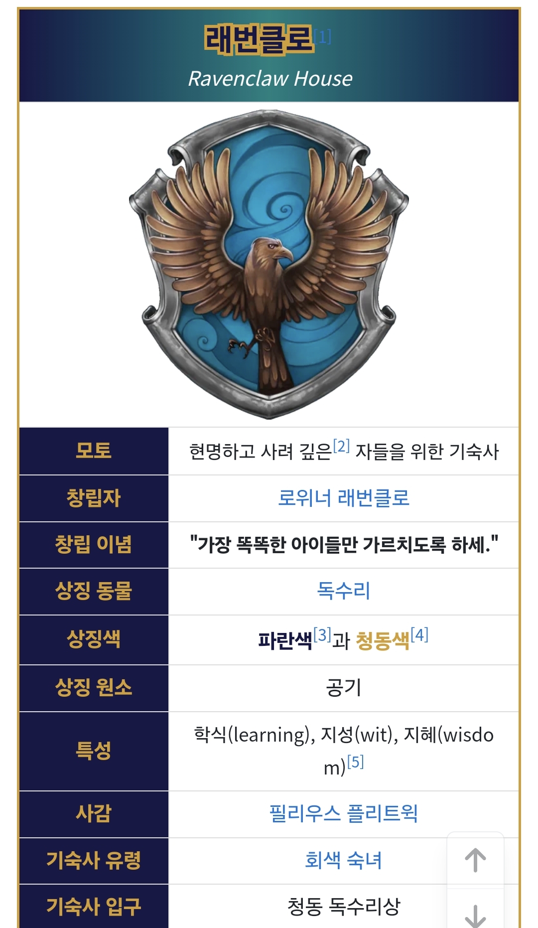 아래 나무위키에 호그와트 기숙사챕터 참고부탁드려요.