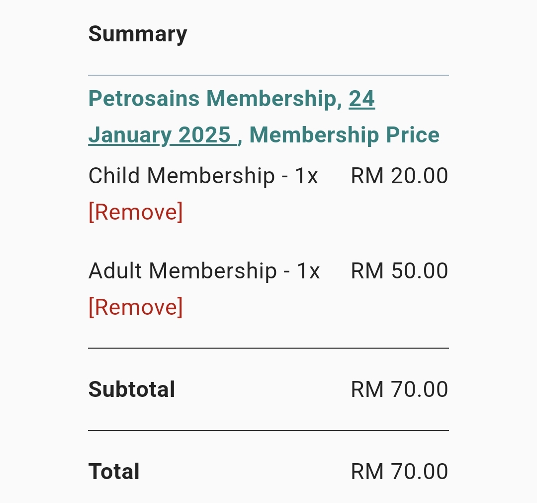 제가 구매할 당시엔 아이1명+어른1명 65RM이었어요. 그런데 현재(24년 1월 24일 기준) 조회해보니 할인이 있는지 어른이 35rm으로 할인된 가격으로 왔고 아이는 25rm입니다. 가격변동이 그때그때 있어요.
